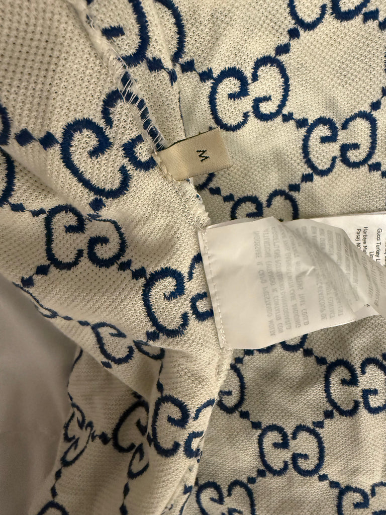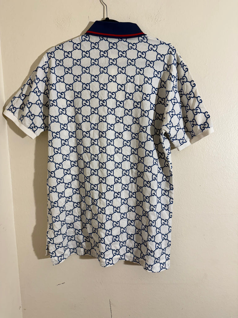 Authentic Gucci polo GG monogram pattern in blue and beige in a luxurious and stylish piece in blue and beige. Excellent condition