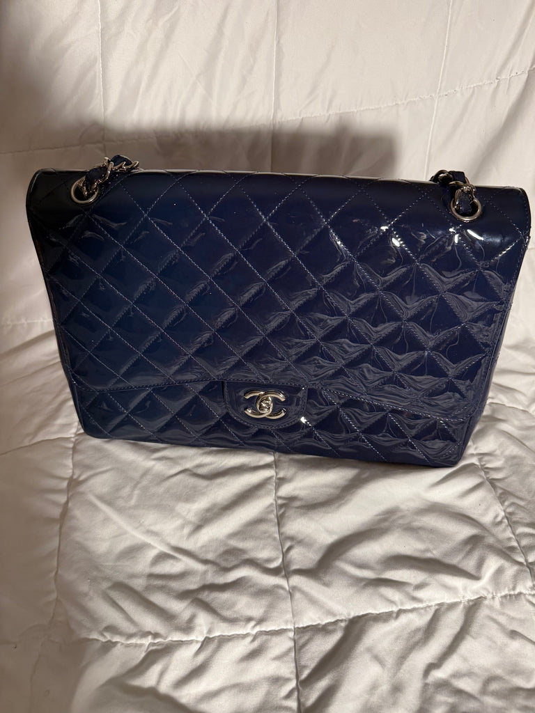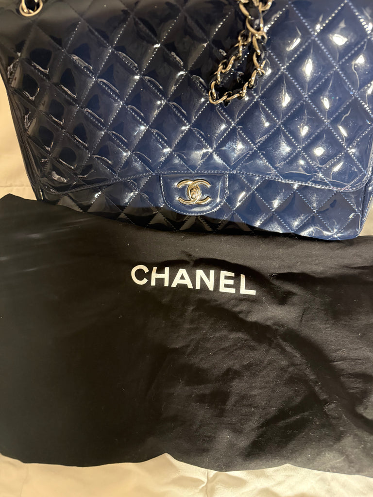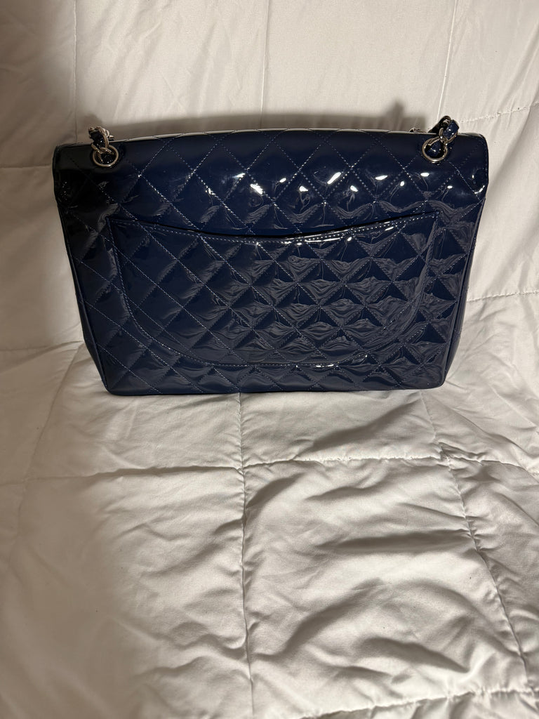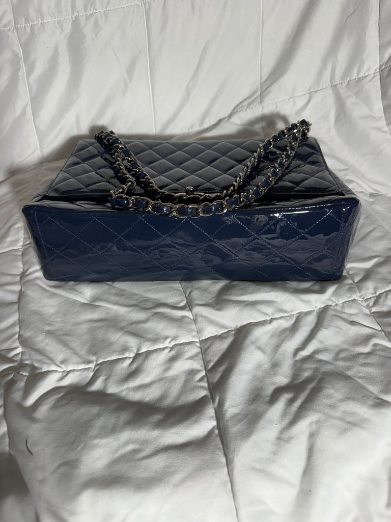 Chanel Navy Blue Patent Leather Classic Jumbo Bag