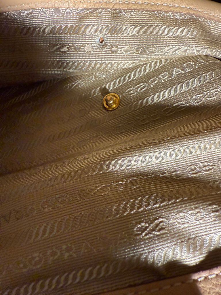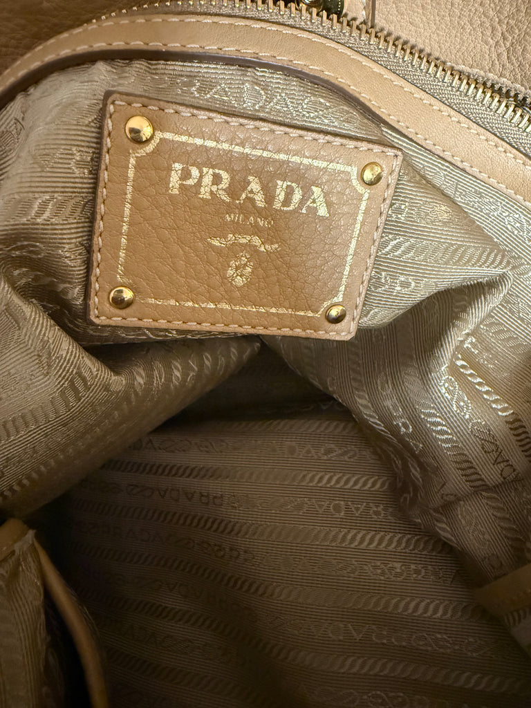 Prada Tote Large Shoulder Bag Vitello Phenix Beige Leather