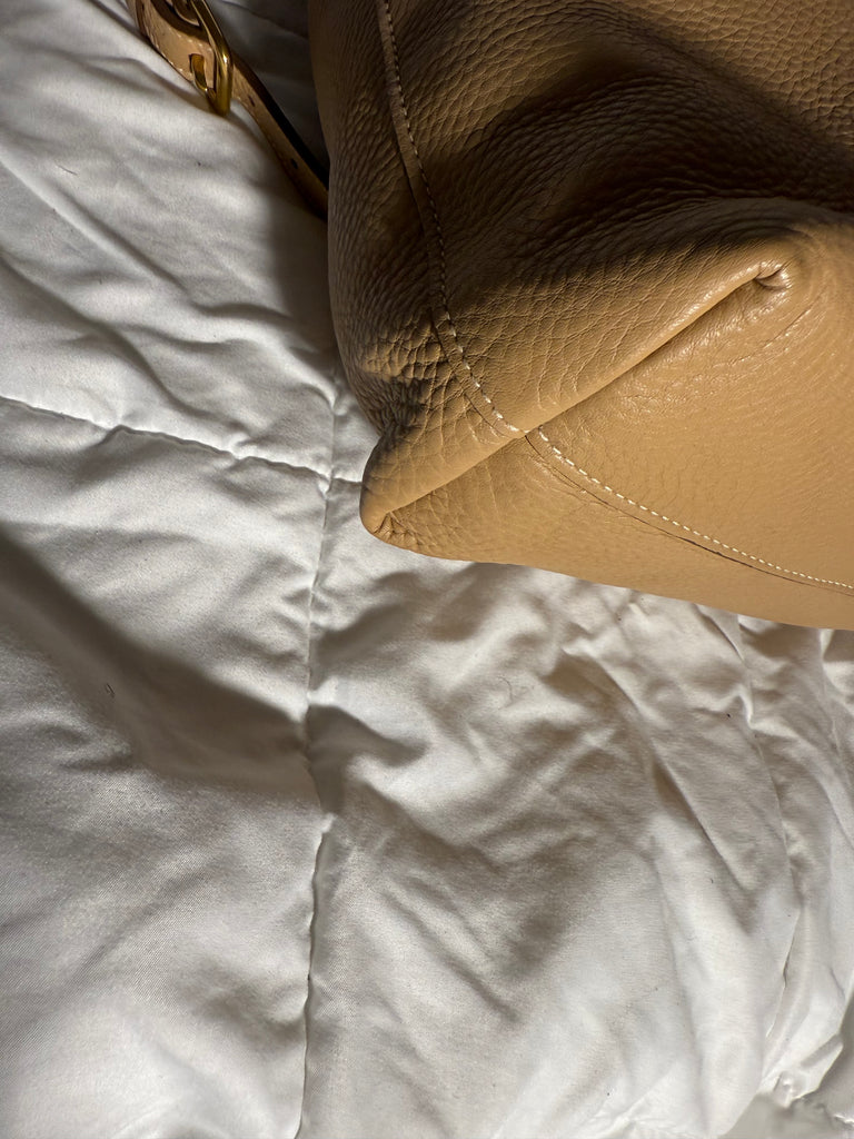 Prada Tote Large Shoulder Bag Vitello Phenix Beige Leather Understated elegance at its finest. with removable shoulder strap. The bag is used but in excellent condition Pradas beige leather tote is crafted with a sleek structured design and nylon lined. Light mark scratches and stuff. Dust bag included